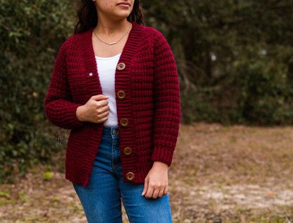 This cozy, versatile crochet cardigan is made in one piece! Crochet your own Crimson Cardigan with this size-inclusive crochet cardigan pattern.