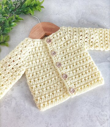 This crochet pattern for the criss-cross cardigan is made using a simple sc round then a crossed dc round and is quick and easy to work up. It comes in 10 sizes from preemie to 10 years.