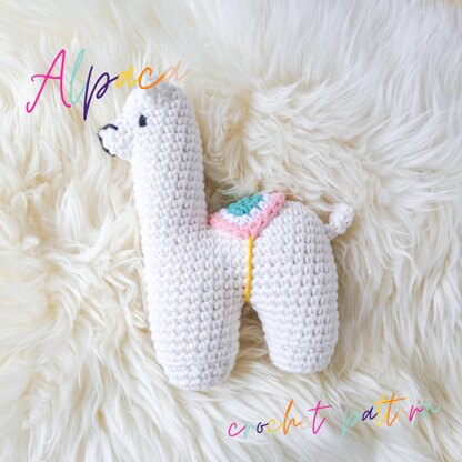 Crochet an adorable alpaca perfect for any child's play (or for yourself). This pattern has very minimal sewing the only sewing required is when attatching the ears and snout. The rest of the pieces are crocheted together making the item come together seamlessly and easily. This pattern comes with two options on how to make the blanket. Blanket #1 is designed to be attatched to the piece making it not come off while in use whereas blanket #2 drapes over the alpaca's back and has the ability to come off.