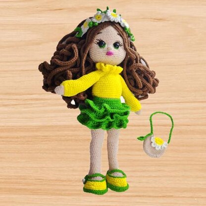 - Materials: Alize cotton gold: Skin color nude no 382 White no 55 Brown (for hair) no 493 Green no 35 Yellow no 110 75cm 1.5 mm electrical wire