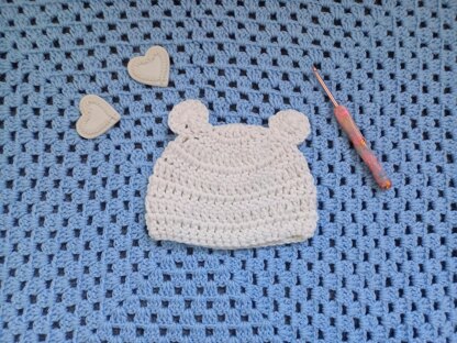 The Baby/Child hat with bear ears pattern is super easy to follow. It can be crocheted for both girls and boys, and comes in 4 different sizes: size 3-12 months, size 1-2 years, size 3-4 years, and size 5-6 years old. It has plenty of photographs to help along the way, and requires very minimal sewing.