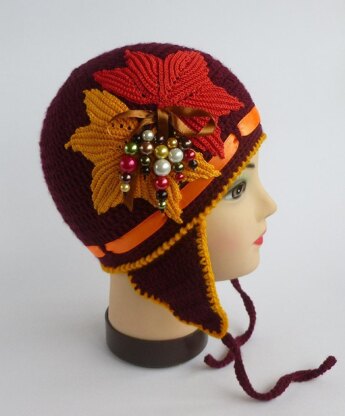 DK yarn for hat and thin crochet cotton for leaves