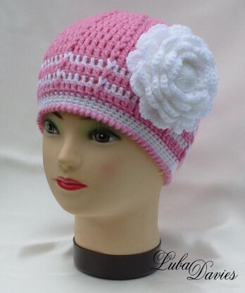 Crochet Baby Girl Beanie Hat with Large Rose Flower