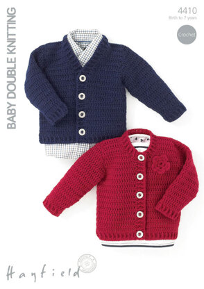 Crochet Cardigans with or without flower detail in Hayfield Baby DK - 4410