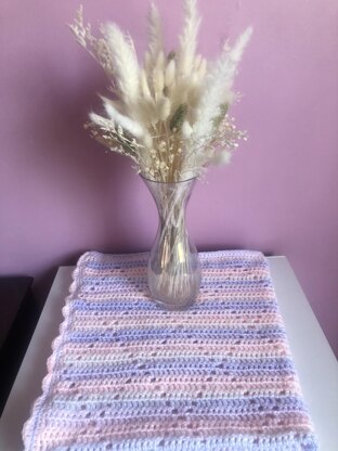 This pattern for a baby blanket is an easy/beginner level pattern. You will need to be competent in the follow crochet stitches and skills: dc, hdc, sc, ch, sk1, sk2, slst. This pattern is pretty simple with a little counting of stitches needed each row, but it is reasonably intuitive once you get into it. You will need 300g of DK baby yarn (I'd recommend a premium acrylic for a baby blanket), 5mm crochet hook, scissors and tapestry needle. A gauge is included in the pattern. The dimensions of the finished blanket are 31x35 inches.