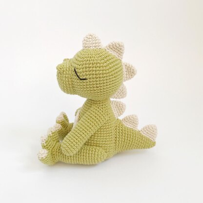 The finished crochet dinosaur is about 6 inches (15 cm) tall. But this will vary depending on the size of your yarn and crochet hook.