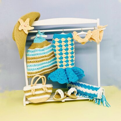 Crochet doll clothes, amigurumi doll clothes, Miss July outfit