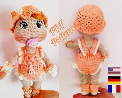 Crochet doll pattern amigurumi baby doll pattern, Crochet body doll base 12,6 inch (32 cm), Lulu doll (English, Deutsch, Français)
