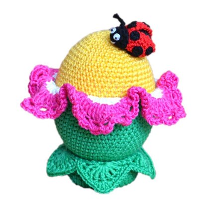 Crochet egg. Easter ornament. Flower Easter egg. Crochet ladybug. Collectible egg. Easter project