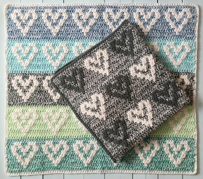 I love this design and had so much fun crocheting it! Despite its complex "look", this heart baby blanket is actually quite easy to make. It utilizes a simple technique I developed called Reversible Image Crochet. This technique eliminates the carrying of multiple strands of yarn. It also gives you clear images that are identical (in opposing colors) on both sides of your work! That’s right; this heart blanket is COMPLETELY REVERSIBLE!
