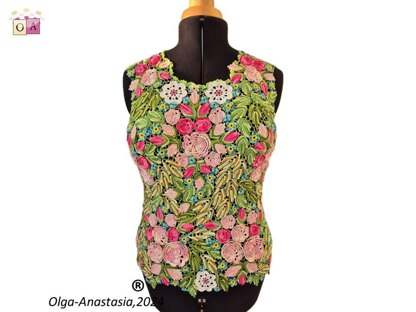 Crochet Irish lace sleeveless blouse Modern crochet Irish lace pattern . A detailed pattern for all crochet motifs - a graphic diagram, a photo and a verbal description of each crochet row. PDF file for 70 pages Design work by Starostina Olga.