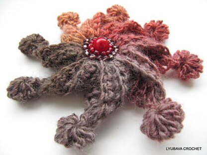 Crochet Large Flower Brooch "Fantasy" TUTORIAL CROCHET PATTERN PDF with detailed written instructions in English, in American crochet terms, with tutorial pictures step by step showing the stitches row by row, made it so much easier to work with the pattern even for the beginner.