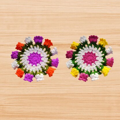 Each finished coaster blooms beautifully like a lotus flower — perfect for home décor, markets, or gifting occasions such as Mother’s Day and housewarmings.