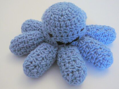 Worsted weight yarn in your choice of colour. Black worsted weight yarn (small amount) for face 4mm hook Yarn needle Fibrefill to stuff your octopus Beads for eyes (optional) Sewing needle (if using beads for eyes)