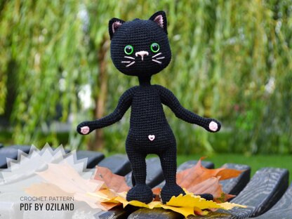 Language Russian / English Our easy to read crochet patterns are available in English (using US terminology) & Russian. Measurements Height: 19 cm /7.5“ (when made with indicated yarn) Skill • Suitable for beginners (level 2 - middle) • Pattern contains clear and concise instructions • Step-by-step photos included for visual guidance • Manual includes 18 pages In the pattern you will find: - Shadow the black cat toy instructions (crochet)