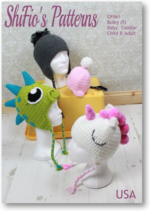 Crochet pattern Unicorn & Dinosaur Hat UK & USA Terms #361