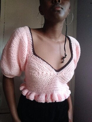 This pattern is available in size X small, Small medium, large and X large XS(S, M, L, XL). The primary color used is pink but one can use any color of their choosing The yarn used is light weight, I used double strands to increase the yarn weight