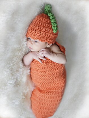 Baby Pumpkin Pattern. This easy to follow pattern works up very quickly using worsted weight yarn held double for a cute bulky look. Pattern is for the cocoon and matching hat!