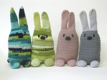 Crochet rabbit can be worked in any DK-weight yarn (this is any yarn that has a knitting tension of approx. 22 sts and 28 rows to 10cm/4in.)