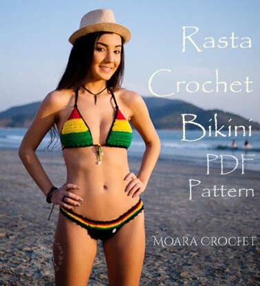 Crochet Rasta Bikini Pattern with HIDDEN ELASTIC! Let go of the stresses of life & relax on the beach in my ‘One Love’ Reggae bikini with added bead detail & bikini bottoms designed in the Brazilian style. Pattern uses 4 ply yarn to make your bikini light weight & cool.