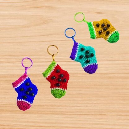 - Materials: Alize Bebe Sekerim yarn Hook No. 3 mm Tapestry needle Metal keychain Scissors Beads