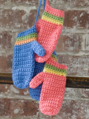 Crochet Striped Mittens in Caron Simply Soft and Simply Soft Brites - Downloadable PDF
