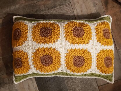 A crochet pattern to make a sunflower design cushion. It was designed as part of a set of 4 cushions loosely influenced by Orla Kiely and taking inspiration from nature. The sunflower cushion represented the warmth and vibrancy of 'Summer'. The pattern is just the pattern for the Sunflower cushion but the other 3 will be available to purchase also also.