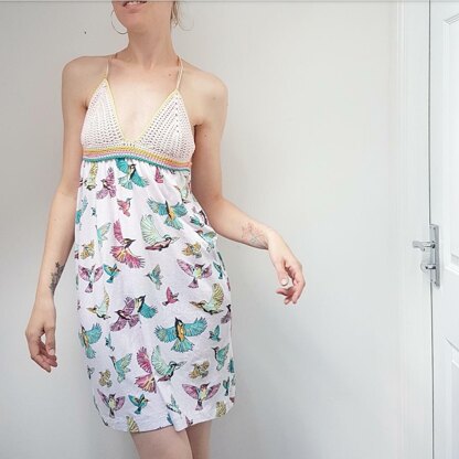 This pdf pattern gives you full instructions to upcycle an old tee into a beach ready bikini dress. This mix of upcycling with crochet is called #crochethacking. As a lady that can get a little self conscious I love the idea of being out in a bikini top but don’t always want to get my tummy out. This bit of #crochethacking uses an old tee to create an empire style beach dress, perfect for keeping cool but covering up. #Crochethacking is not a precise art so think of this as a set of guidelines rather than a traditional pattern. The idea is to give you the tools to experiment and play with your own clothes, keeping them out of landfill and making them things that are unique tailored just to your taste.