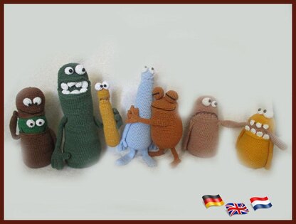 * Simple pattern if you know how to crochet Magic Ring, chain , slip stitch, single crochet, half double crochet and double crochet. * This manual is available in English, Dutch and German. * The monsters are approximately between 15 and 25 cm in size (when using crochet hook size 2.5). * The manual is very detailed and contains many photos. * If you have any problems and / or questions about my instructions please contact me by email. Attention! This is a crochet pattern, not a finished product