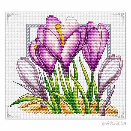 Crocuses Counted Cross Stitch. Easy to Follow Embroidery Chart featuring cute early spring flowers. Great handmade gift idea for Mother's Day or surprise present for a keen stitcher and gardener.\n\nSize: 76w x 67h stitches\nStitched on Aida 14ct: approx 5.5 x 5 cm (14 x 12 in)\nDMC Threads: 26 solid colours (6 blends)\nUsed stitches: full cross stitch, half cross-stitch, backstitch\nSkill level: Beginner / Intermediate\nStitch time: 25-35h\n\nCross stitch pattern in PDF, Instant Digital Download includes: 1) cover page with preview; 2) instructions, symbols key and shopping list (DMC thread colour numbers and estimates, as well as fabric options); 3) two black and white charts, with and without backstitch; 4) two colour charts, with and without backstitch; 5) single page PDF for Pattern Keeper (available on request).\n\nPlease note: This pattern is for personal use only - not for commercial use. You can't make copies of our charts to distribute (either as PDF or printed versions) but you can definitely sell your finished cross stitch work.