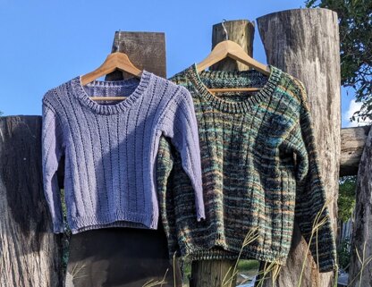The Croker Island Pullover is a loose-fitting sweater with drop-shoulder sleeves and a slightly cropped length. It is designed to be worn by children aged 3 to 12 years, with approximately 3 to 4 inches of positive ease around the body. Perfect for layering, but also so that it will last for several years!