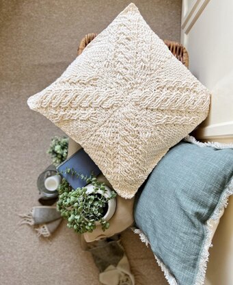 This cable crochet pillow pattern is stylish, sophisticated and endlessly customisable to suit your own home decor. With a boho yet modern feel, you simply crochet 4 matching crochet cable squares for the front and 4 for the back. They are seamed together to form the stunning cross cable design and then joined to form the pillow cover with an optional zip added too.
