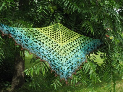 Crossed destinies is a shawl that morphs seamlessly from one pattern to the next. Worked from the top down, this light and lacy shawl is surprisingly warm. Certainly a 'go to' shawl for chilly weather.
