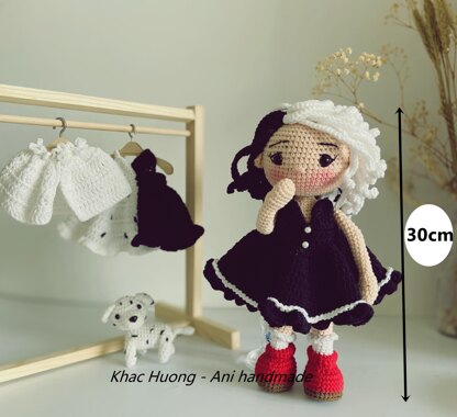 Please that This is a crochet pattern ( DPF file - 23 pages), NOT not the dolls in the picture. *To make a doll with this pattern, you need to know basic crochet skills. *They also contain a lot of step-by-step photos * Patterns include: two dresses, pet * This pattern is available in English language. * Following this pattern, "CRUELLA doll will be approximately 30cm Materials Yarn : YarnArt (jeans) Hook: 2.3mm(crochet) * You can use the same pattern to make smaller or larger toy by using finer or bulkier yarn * This is easy crochet a doll to work up. Ideal for a gift for child gift for birthday, Christma, Derco, .... NOTE: All images and designs, including the name and description of this pattern, are the intellectual property of Khac Huong - Ani handmade. You are welcome to sell items made of this pattern. I would be happy if you link back to my shop and give credit to me as the designer.