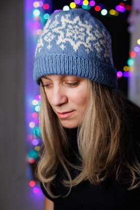 Crystal Flake is inspired by the serene beauty of winter. This beanie captures the essence of snow-covered landscapes with its intricate snowflake Fair Isle pattern. With a decorative cast-on and a ribbed folded brim, this beanie is as elegant as it is cozy. Worked from the bottom up, starting with the brim, a fixed folded line is created before moving onto the joyful snowflake pattern that adorns the body. The crown in worked in the main color, traditionally shaped in spiraling wedges.