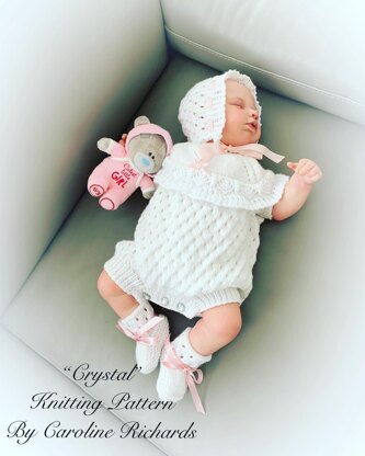 A pretty 3 piece romper set. This pattern provides the instructions to make this 3 piece set. consisting of a hat, Romper, and little shoes. The romper is knitted from the top down using single-pointed straight needles so requires minimal sewing. With Line by line instructions, this little set is easy to make