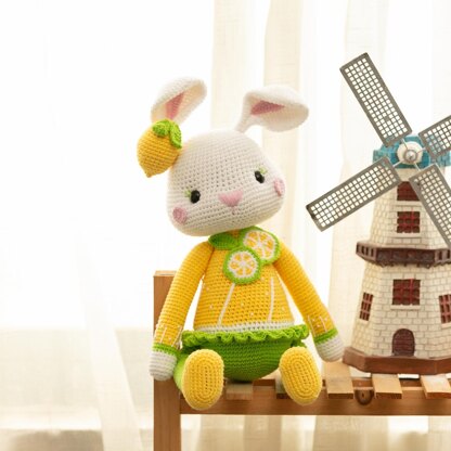 Size: The finished Fresh Lemon Bunny stands approx. 45 cm, 17.7 inches tall (sitting state about 30 cm). Certainly, the thinner yarn you use, the smaller the doll will be.
