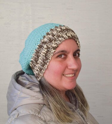 This easy slouchy hat pattern works up quickly in bulky yarn. It’s designed to meet donation requirements for Head Huggers.