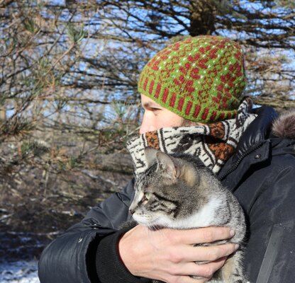 This is a pattern for a beanie style hat worked in the round and using the stranded colourwork technique. You may work 3-colour rounds or add the third colour with Duplicate Stitch after the hat is knit.