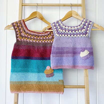 A simple raglan style top for all cake loving kids! The design features a super cute cupcake applique, as well as a subtle cupcake shaped border on the yoke.