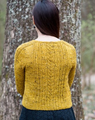 Cables and cardigans go together like peas and carrots! Throw in tweed yarn and you have perfection! Curry has an interesting construction and fun cables making it a very enjoyable knit. The construction is a modified version of the contiguous set-in sleeves method developed by Susie Myers. For the sample I used Happy Hank Co, Donegal Tweed DK in the Curry color way. The yarn is gorgeous and has great stitch definition!
