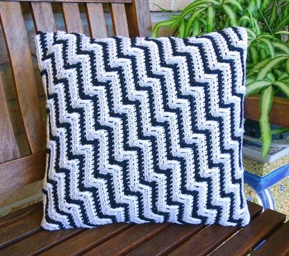 As this crochet cushion is worked in the round there are no side seams to join which we love. The less seams to join the better I think. The textured design is featured on both the front and the back. The cushion closure is at the top end and closes with 4 buttons.