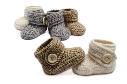 Crochet pattern baby booties with 4 sizes included: 0-3; 3-6; 6-9 and 9-12 months.