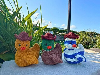 Get triple the cuteness with this Cute Duck Crochet Pattern Bundle 3 in 1 – the ultimate no-sew amigurumi set for farm animal lovers and crochet beginners! This instant PDF download includes 3 unique duck designs: the classic yellow duck, the bold blue-striped duck, and the adorable green mallard – all wearing their signature cowboy hats. With zero sewing required, these patterns are fun, fast, and beginner-approved!