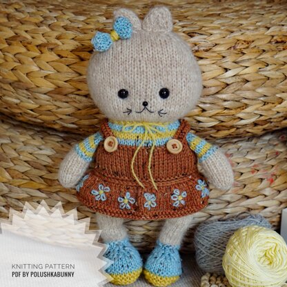 ABOUT PATTERN PDF Knitting US Terms The pattern gives detailed information about: - yarn substitutes - all yarn characteristics - all tools recommendations - gauge/tension - abbreviations - tips Flat and seamed Finished size = about 33 cm (13 inches) ---------- LANGUAGES English(US); the same terms are for the UK ---------- MATERIALS needed Polyester Filling/ Stuffing ( 35-40g approx) Safety eyes Ø9mm х2 Safety eye Ø6mm х1 Black embroidery thread or yarn (for mouth and eyebrows) ---------- TOOLS Straight needles 3.5mm (US 4) Sewing short needle for embroidery Tapestry needle