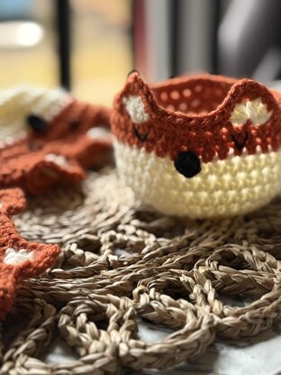 Yarn: chunky yarn in two colours for the fox and a DK cotton for the eyes and nose