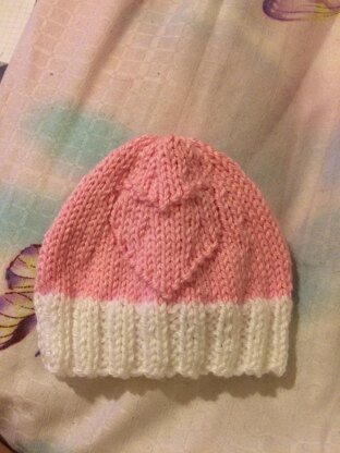 A cute baby beanie that fits newborn up to 6 months, it has a cute heart engraved into the pattern which adds character and is very cute, any little one would look very cute in this, it would also make a nice gift.