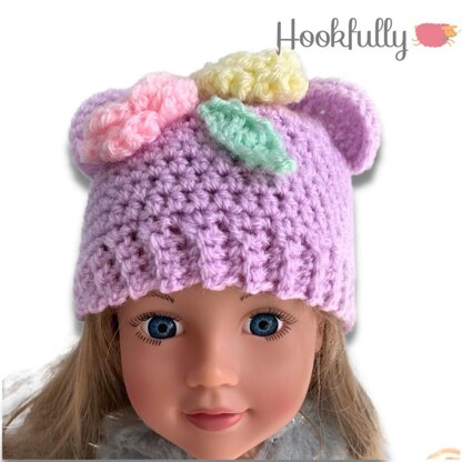 This crochet pattern is for a cutie bear doll hat. The doll clothes are suitable for 14” - 18” dolls. The dolls beanie has bear ears, and flowers sewn on.