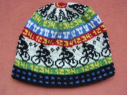 8 cyclists race around the body of the beanie and 8 even smaller ones at the crown.
