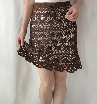 Feminine floral lace and contrasting lacy stripes bring eye-catching impact to this chic and stylish drawstring skirt with optional lining. The straight skirt is polished off with a slightly flared flounce. Worked in the round from the top down, the skirt can be easily adjusted in length to suit your style by changing the number of floral bands.